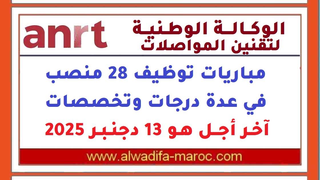 L’Agence Nationale de Réglementation des Télécommunications (ci-après désignée par «ANRT») organise à partir du 27 décembre 20251, un concours de recrutement2 de: