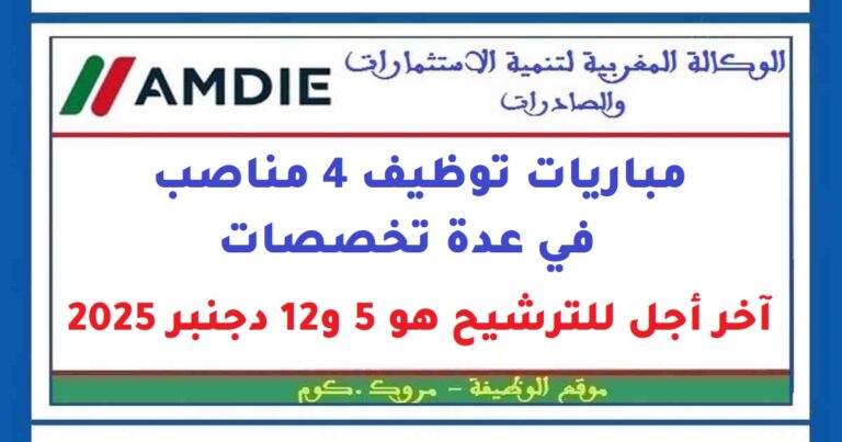 You are at:Home»القطاع الخاص»مباريات توظيف 4 مناصب في عدة تخصصات. آخر أجل للترشيح هو 5 و12 دجنبر 2025
